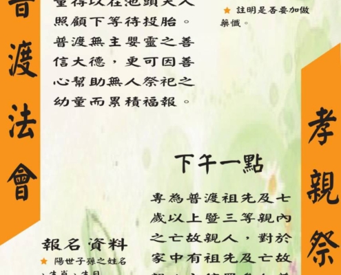 舉辨嬰靈法會暨祭祖法會,敬邀諸位善信大德,蒞臨參拜。