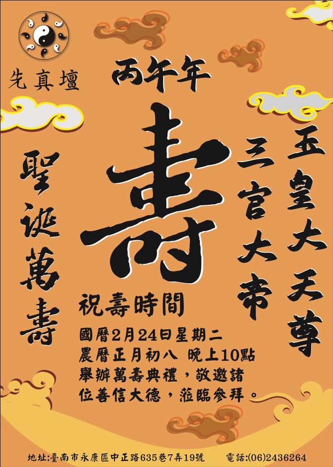 舉辦萬壽典禮,敬邀諸位善信大德,蒞臨參拜。